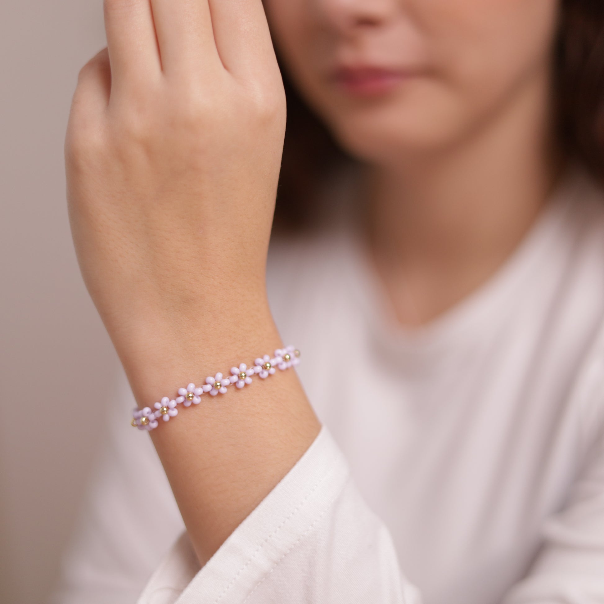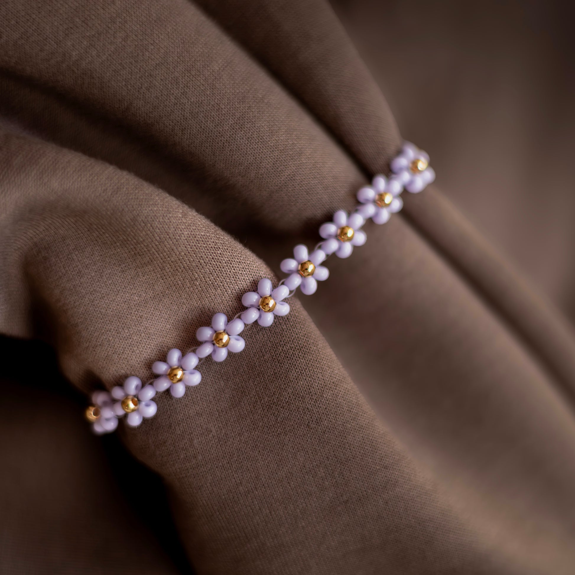 Náramek Violetta v jemné pastelové fialové barvě je ztělesněním něžnosti a elegance. Jeho světlé, jemně vybledlé tóny připomínají ranní oblohu posetou fialovými odstíny, které vnášejí klid a harmonii do každého okamžiku. Ručně vyráběný květinkový náramek v pastelově fialové barvě, doplněný o jemné zlaté detaily, je tvořen z kvalitních skleněných korálků od českých výrobců. Spojení elegantního designu a precizního zpracování z něj dělá dokonalý doplněk pro každou příležitost. Díky univerzální velikosti s prodlužovacím řetízkem z chirurgické oceli (cca 5 cm) se přizpůsobí každému zápěstí a zajistí pohodlné nošení.