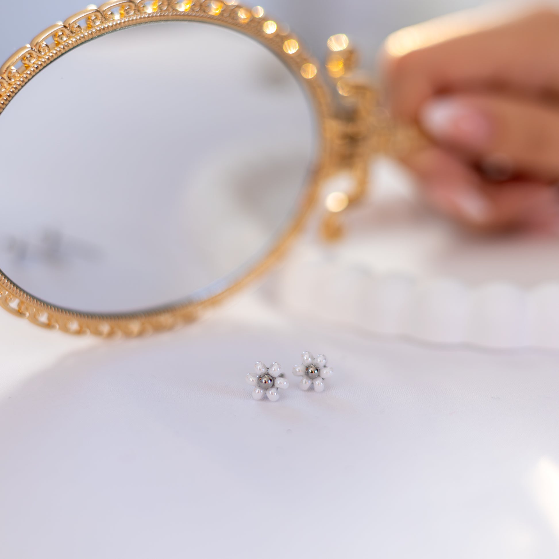 Náušnice jsou vyrobeny z kvalitní nerezové oceli ve stříbrné barvě, která je odolná a barevně stálá. Květinka je tvořena skleněnými českými korálky, které vynikají precizním zpracováním a krásným leskem. Díky své jemné velikosti jsou pohodlné na celodenní nošení.