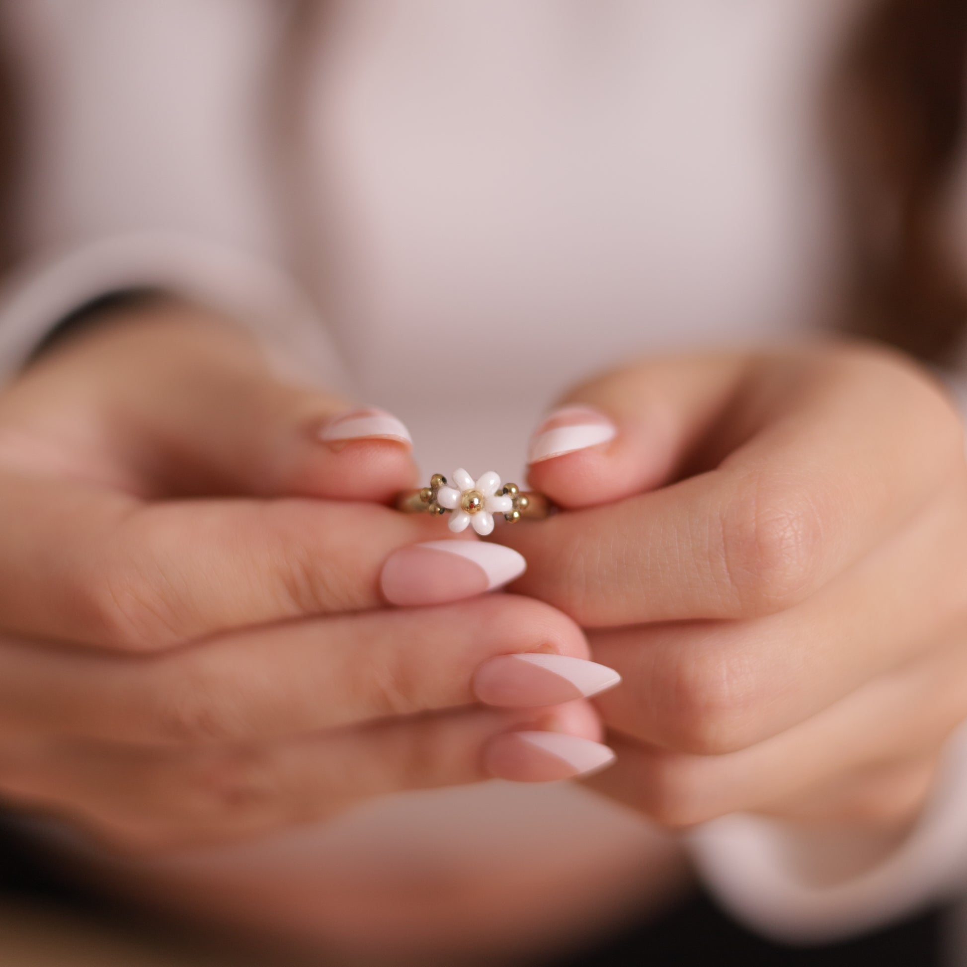 Objevte jemnost a čistotu prstýnku Bianca s drobným bílým kvítkem, který v sobě nese něhu i nadčasový šarm. Květinový detail je vytvořen z kvalitních českých korálků, zatímco samotný prsten je vyroben z odolné nerezové oceli, která si zachová svůj lesk i při každodenním nošení.
